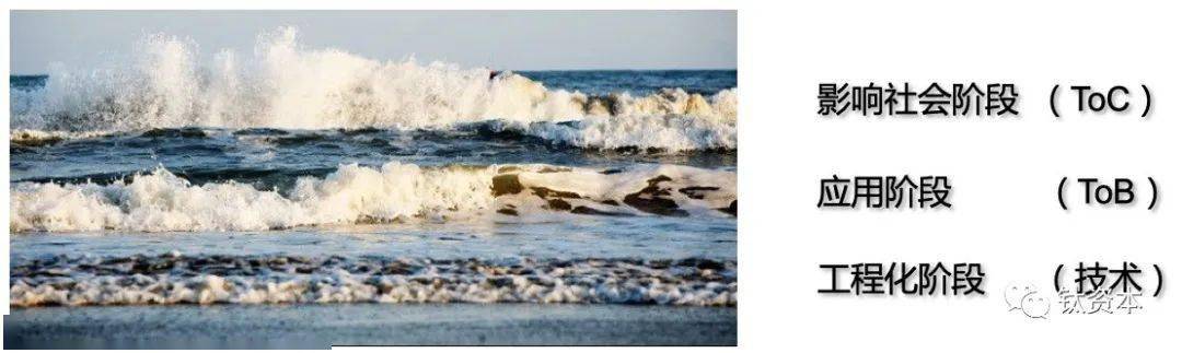 AI投资趋势是类似于三浪叠加的形态:第一浪是工程化阶段,这个阶段还处在工程化向应用之间的过渡,归根结底还是投技术;第二浪,即应用阶段,比如机器视觉就处于应用阶段,虽然应用还不算广泛,但是还是有很多应用的点;第三浪,就是影响社会,如果技术能影响社会,说明已经趋于成熟,这就是2C的阶段。