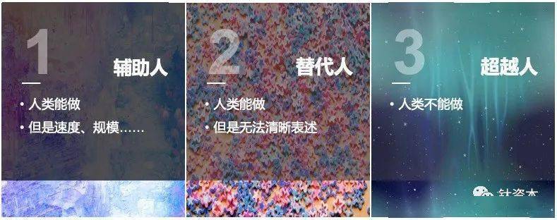 AI的本质就是辅助、替代和超越人。辅助人是指考虑数据处理的速度和规模时,人力不能为时需要AI来帮助处理;而替代人是指在一些危险以及人类无法清晰辨别及表述的情况下,AI可以替代人来完成任务;