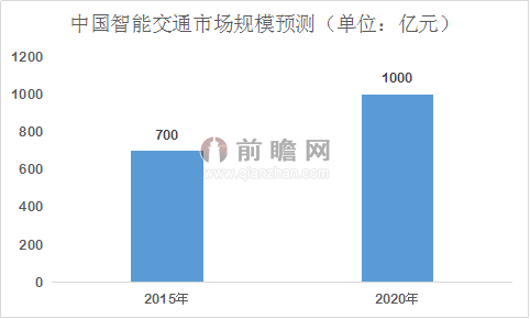 在政策引导下,我国智能交通市场规模逐年快速增长。据前瞻产业研究院发布的《中国智能交通行业市场前瞻与投资战略规划研究报告》数据显示,2015年,我国智能交通市场规模达到700亿元,预计到2020年突破千亿。