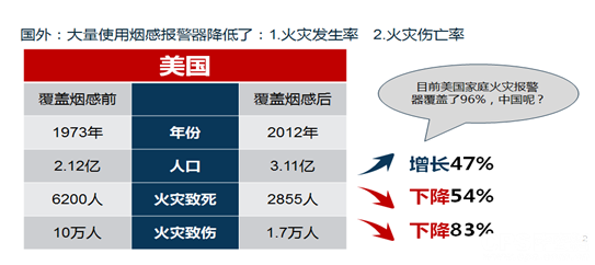 针对高层建筑的消防问题,国际上的做法是采用独立式烟感进行火灾报警。相比欧洲和美国,德国和法国是强制安装独立式烟感,美国是通过大规模推广独立式烟感才大大降低火灾伤亡。