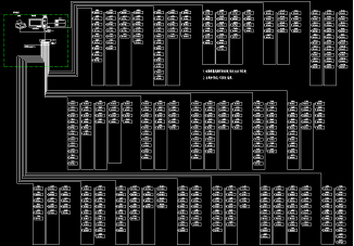 系统通讯结构示意图,主要显示系统的组网结构,系统采用分层分布式结构,同时监测间隔层设备的通信状态。红色表示通讯正常,绿色表示通讯故障。图片绿色表示未投入使用的商户仪表。见图(7)。
