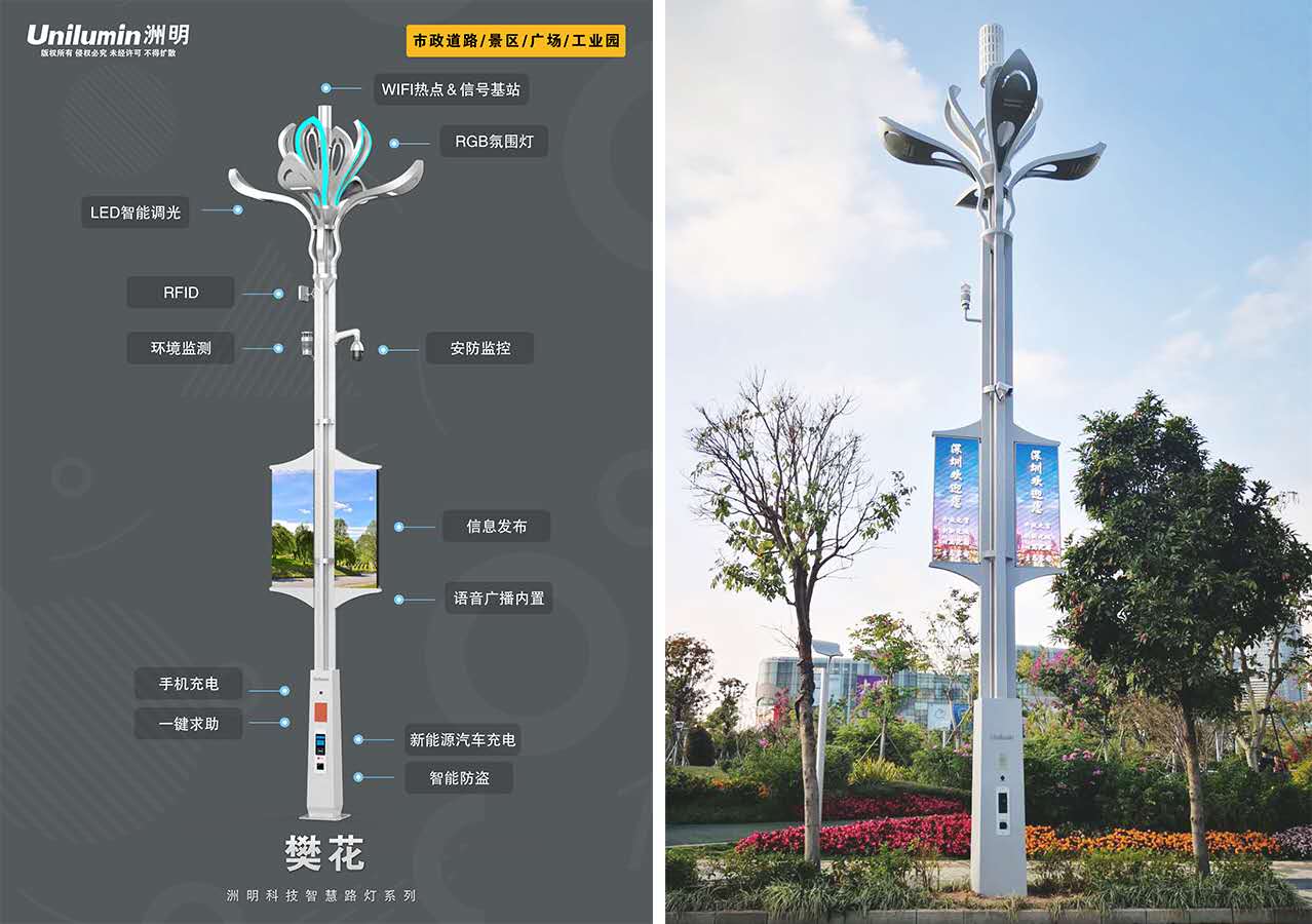 目前,洲明科技已经量产的智慧灯杆产品有凤凰系列、丝绸之路、紫荆花系列,以及市政科技系列等,洲明智慧灯杆的产品具备迅速落地、快速交付能力。