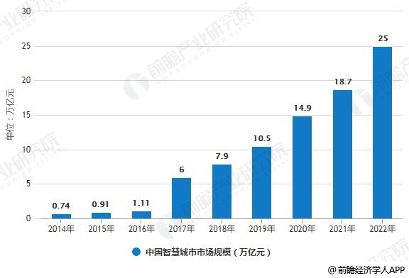 2022年我国智慧城市市场规模将达到25万亿元
