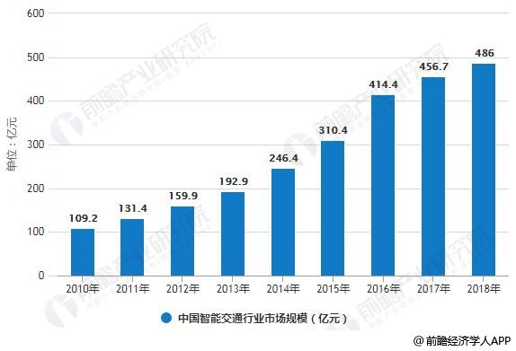 近年来,众多政策纷纷出台支持智能交通产业发展,随着城市化信息技术的发展,城市智能交通产业规模也在逐年扩大。2018年我国城市智能交通达到486亿元,同比增长6.42%。