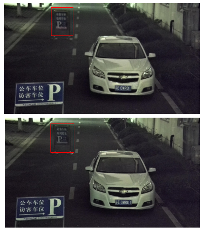 其次,由于在夜间需要抓拍清楚机动车、非机动车以及行人等运动物体,就必须根据物体行进速度提升摄像机的电子快门速度,否则运动物体抓拍的图片将有明显模糊拖尾。