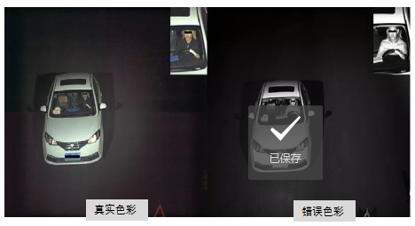 当遇到一些红外反光材料的物体,采用黑光技术的摄像机在色彩还原上也有一定的弊端。比如如下示例,因为司机穿的衣物是黑色的反红外光材料,通过黑光技术还原的图像将黑色衣物还原为白色了,会对后续的违法取证造成一定的困扰。