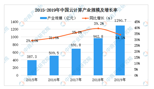 目前,中国云计算市场处于快速发展阶段,容器、微服务等技术的不断成熟,推动着云计算的变革。随着云计算的应用场景的不断拓展,云计算的应用已深入达到政府、金融、工业、交通、物流等传统行业。当前,中国的云计算市场规模整体规模较小,与全球市场规模仍存在一定的差距。数据显示,2018年全球云计算市场规模突破3000亿元。伴随着企业逐渐倾向于追求数字化商业战略,传统IT服务向云端服务转变,全球云计算市场规模将进一步增长。在国内,2019年中国云计算产业市场规模将超1000亿元左右。