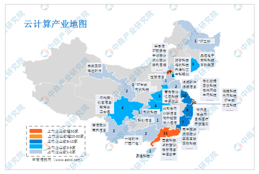 从云计算产业的企业分布来看,目前全国各省市范围内均有分布。其中云计算企业分布主要以北京以及东部沿海地区为主。据中商产业研究院数据统计显示,云计算企业分布多的是在北京,数量近50家;其次,广东省则分布有31家,上海为20家,其余省份均在10家及以下。